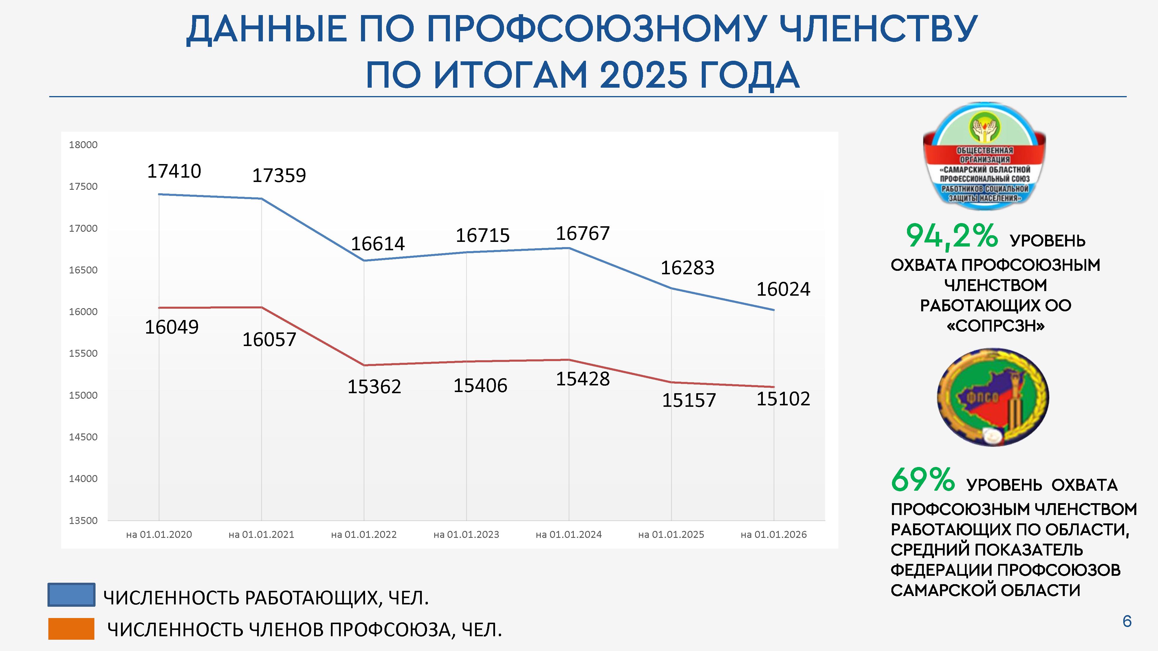 На 1.01.2026 года Самарский областной профессиональный союз работников социальной защиты объединяет 16997 членов профсоюза, из них: